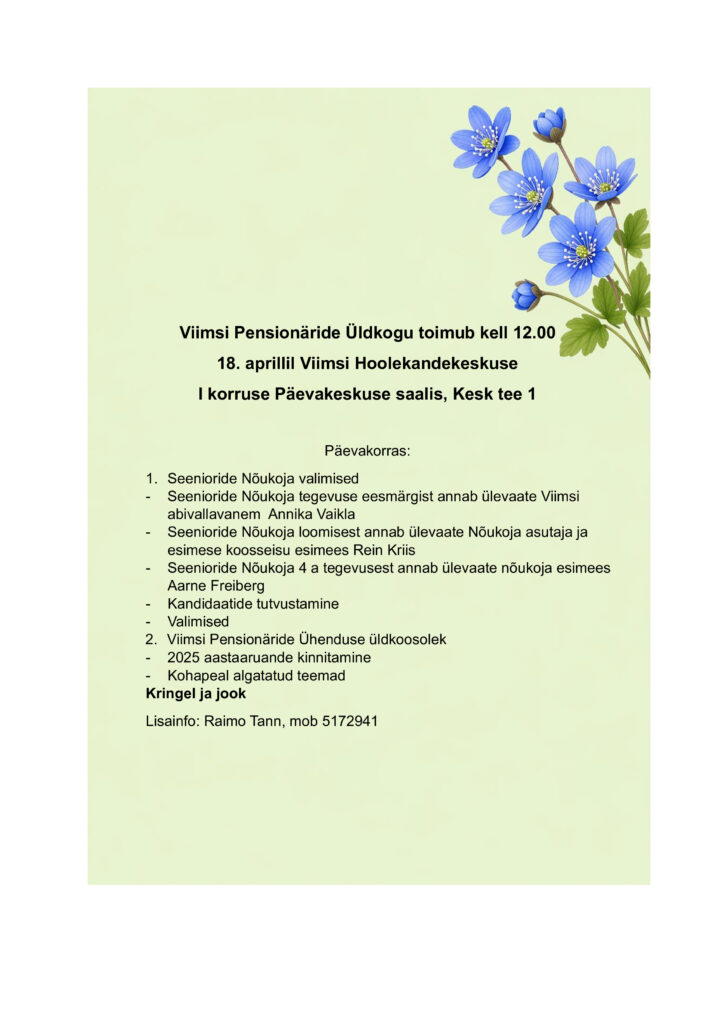 Kell 12.00 Viimsi Pensionäride Üldkogu